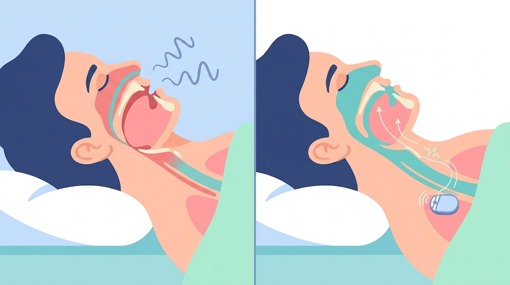 CPAPが使えない方の新たな選択肢が舌下神経電気刺激療法です。これは胸の皮膚の下にペースメーカーのような小型装置を植え込み、就寝時に舌下神経(舌を動かす神経)を電気で穏やかに刺激して気道を確保する方法です。患者さんは就寝前にリモコンで装置をオンにするだけでよく、眠っている間に自動で呼吸を助けてくれます。
